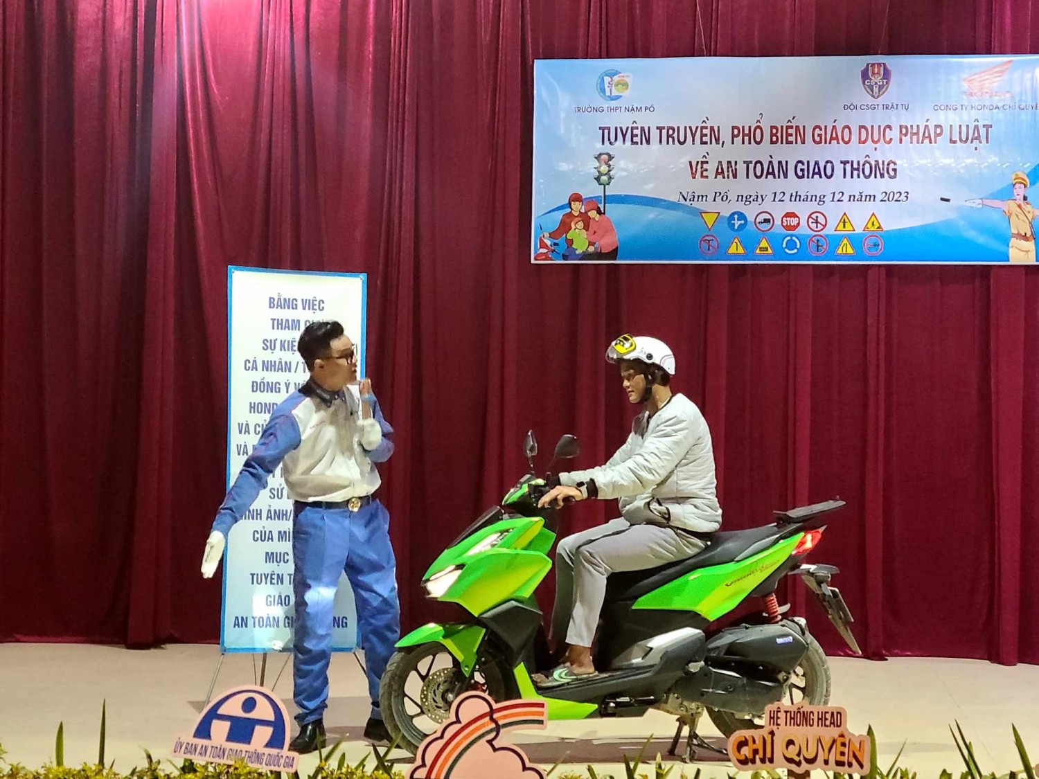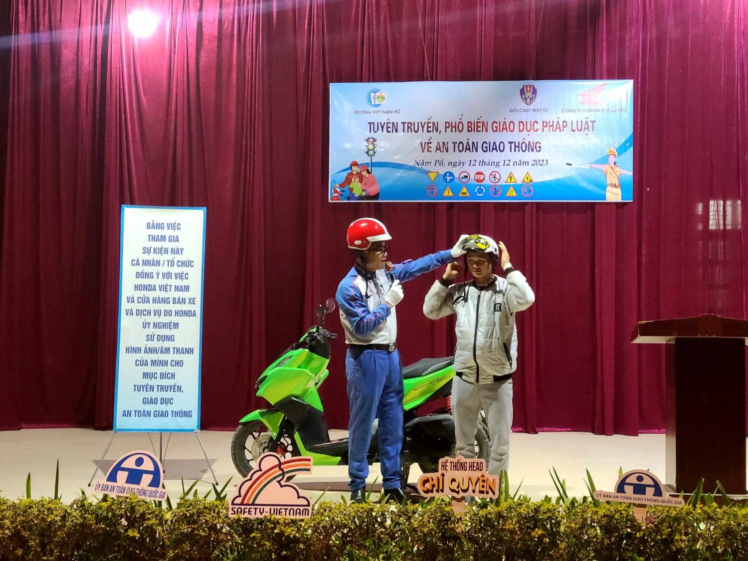 TRƯỜNG THPT NẬM PỒ PHỐI HỢP VỚI CÔNG AN HUYỆN NẬM PỒ VÀ HỆ THỐNG HEAD CHÍ QUYÊN ĐIỆN BIÊN TỔ CHỨC TUYÊN TRUYỀN, PHỔ BIẾN GIÁO DỤC PHÁP LUẬT VỀ AN TOÀN GIAO THÔNG