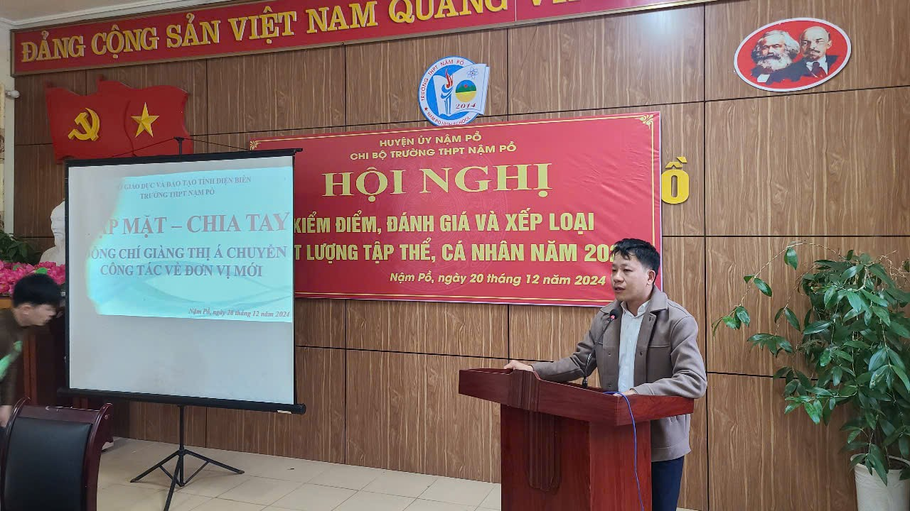 Trong cuộc đời của mỗi con người, ai cũng phải trải qua thời gian học tập, làm việc và rồi thay đổi nơi công tác. Và ở nơi đó biết bao gắn bó và có nhiều những kỷ niệm tốt đẹp không thể nào quên. Chiều ngày 30 tháng 12 năm 2024 được sự nhất trí của Chi bộ nhà trường, Công đoàn trường THPT Nậm Pồ long trọng tổ chức buổi gặp mặt, chia tay đồng chí Giàng Thị Á chuyển công tác.